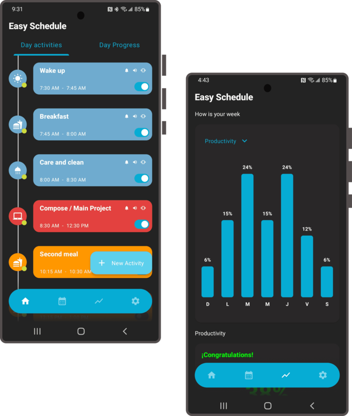 Native Android app that allows users to easily and quickly create their weekly routine. The application offers customization of tasks by adding icons, colors, and alarms, which helps users easily identify their activities