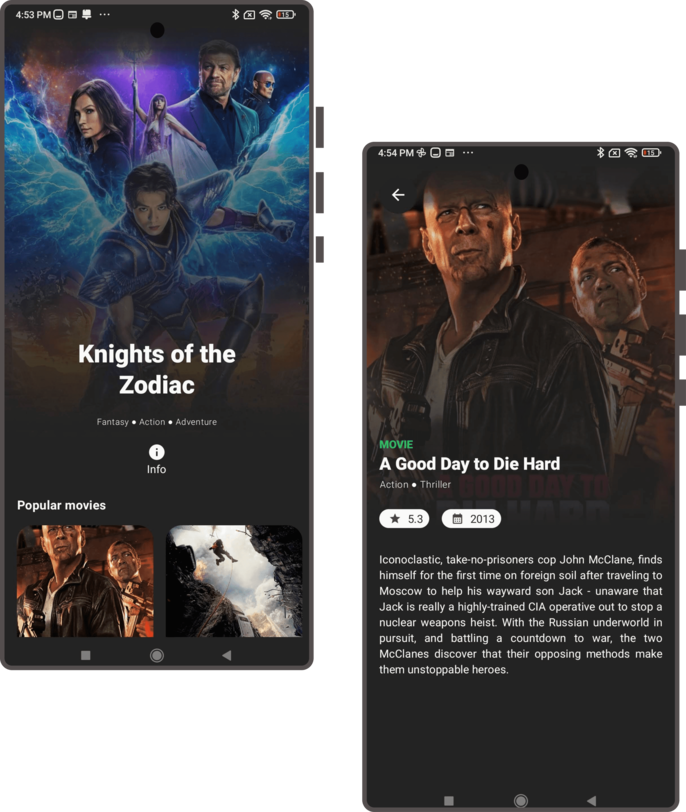 Native Android application that collects information from TV shows and movies using TheMovieDb Api. The App offers the facility of having a widget on the phone's home page to have the latest movie at the moment.